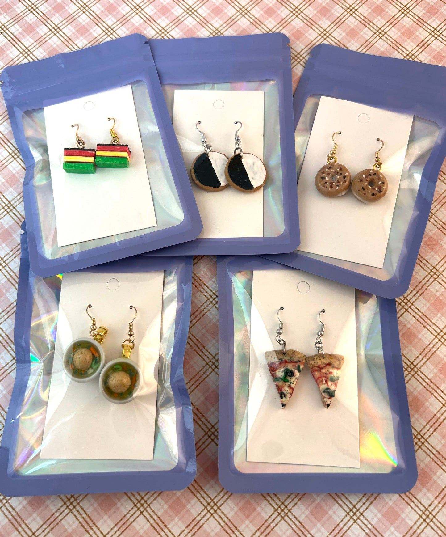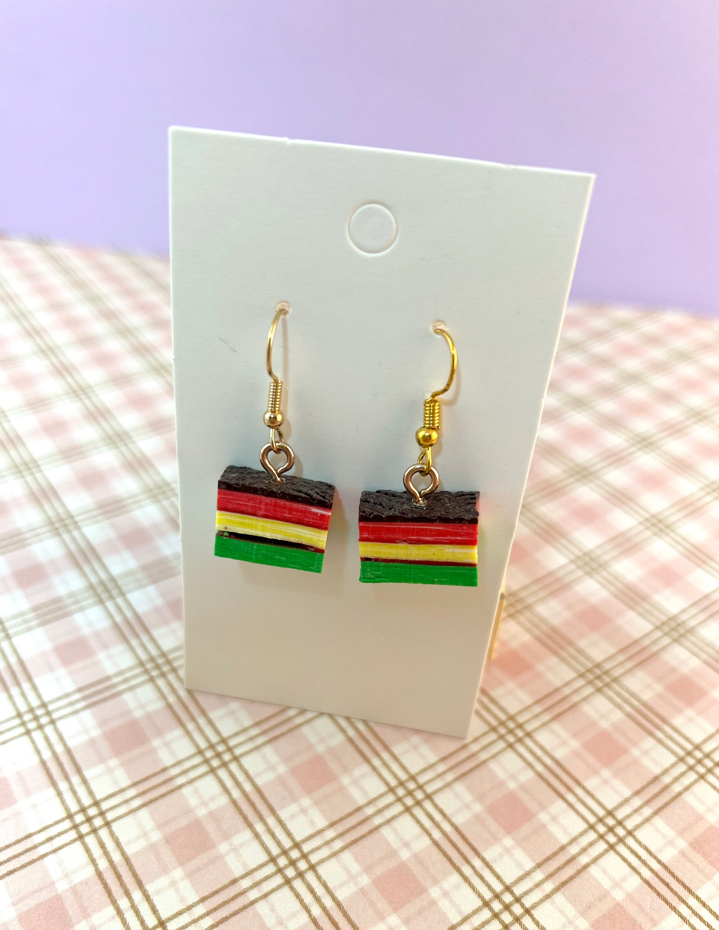 Rainbow cookies! The BEST "cookie" (if you can really call it that) in all of New York (and parts of New Jersey). They're Italian. Did you know that? I always thought they were a Jewish thing because we had them at kiddish on Saturday's (Well I had them at kiddish. I'd try and steal them from the assorted cookie trays before anyone else could get their hands on one... don't worry, I'd share. Sometimes.) The colors are actually supposed to represent the Italian flag. You learn something new everyday... Handmade from clay.
